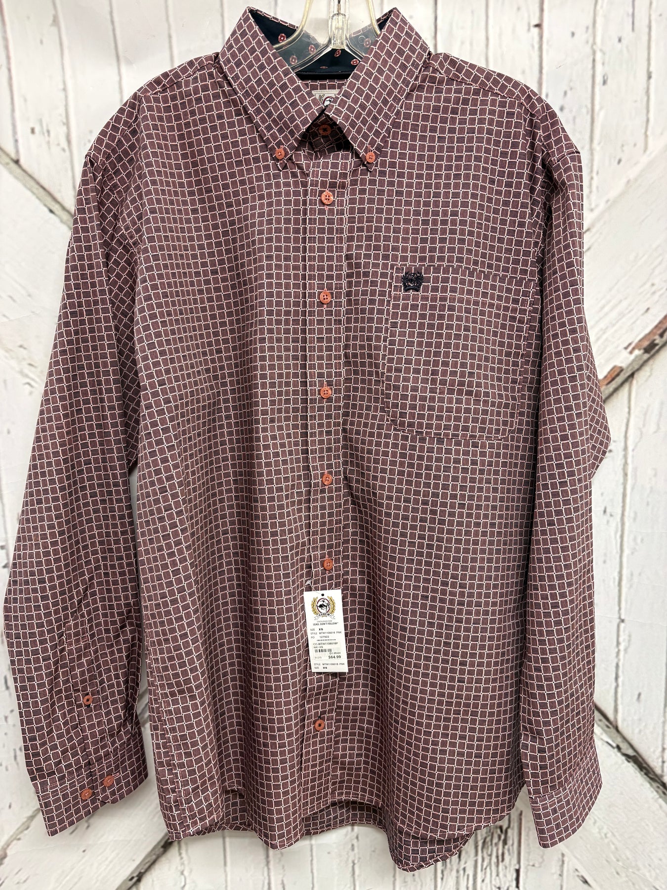 CINCH LS SQUARE PRINT SHIRT-PINK