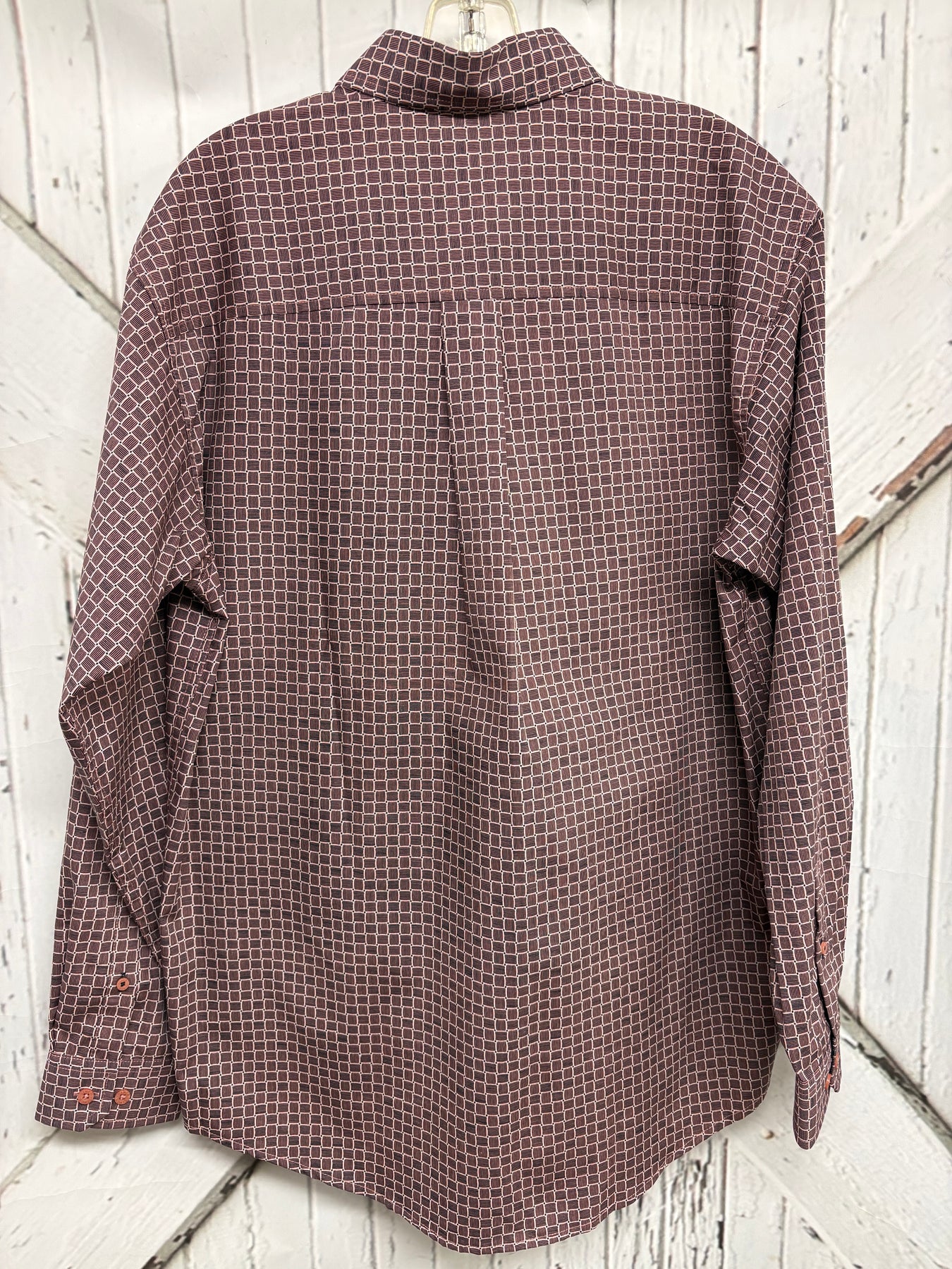 PINK SQUARE PRINTED COTTON-SPANDEX PLAIN WEAVE CONSTRUCTION GIVES THIS CLASSIC SHIRT THAT JUST-RIGHT LOOK AND FEEL. DESIGN FEATURES INCLUDE CONTRAST TRIM, AN OPEN LEFT FRONT POCKET, EMBROIDERED LOGO, AND PINK BUTTONS.