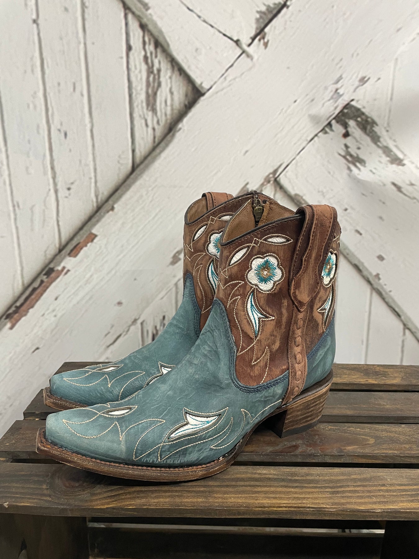 CIRCLE G BLUE/SHEDRON INLAY & FLORAL ANKLE BOOTS