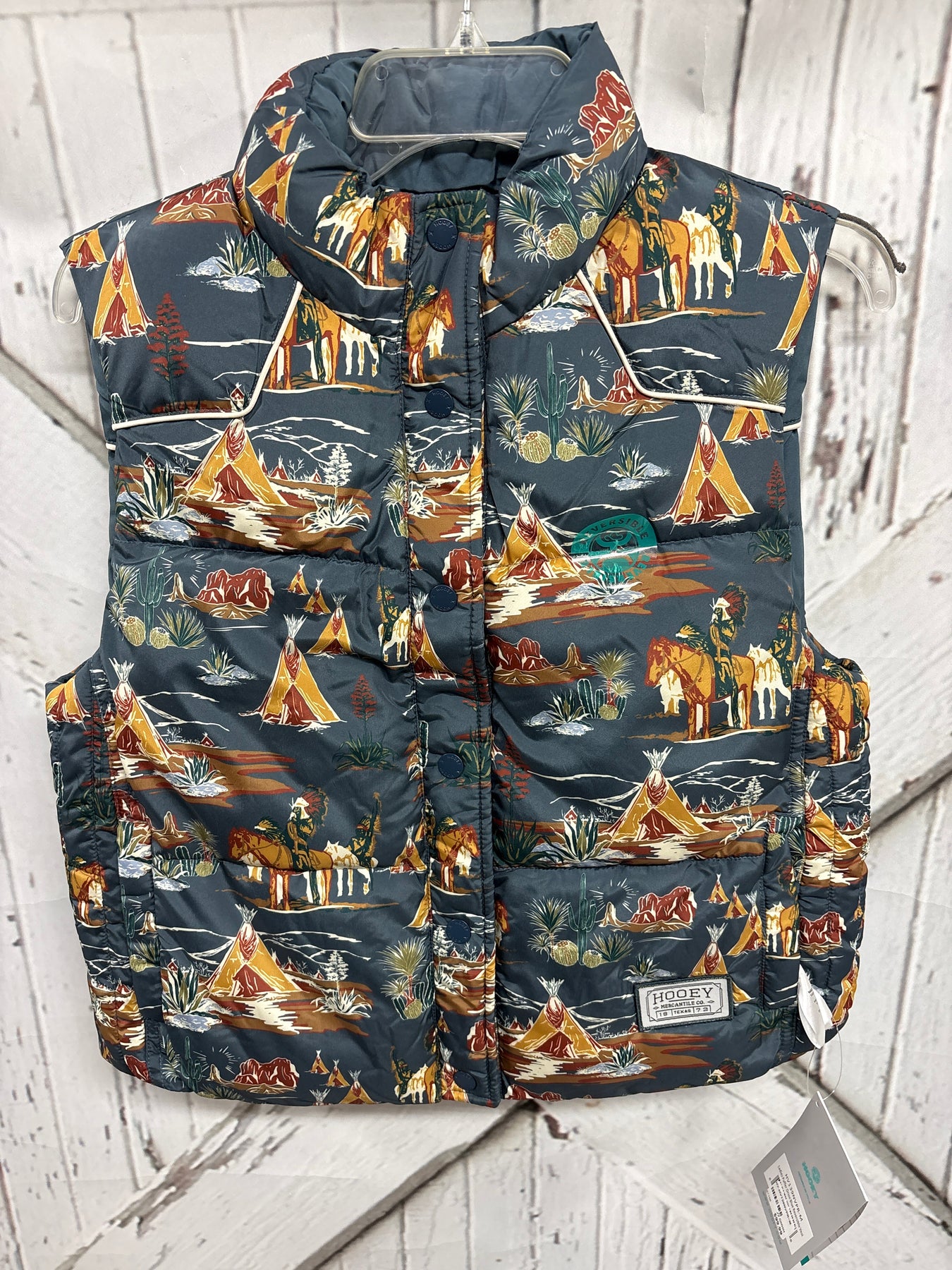 "BRIAR" REVERSIBLE PUFFER VEST ORION BLUE W/ COMANCHE PATTERN