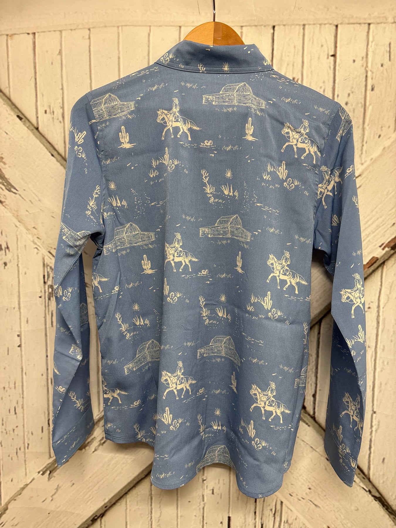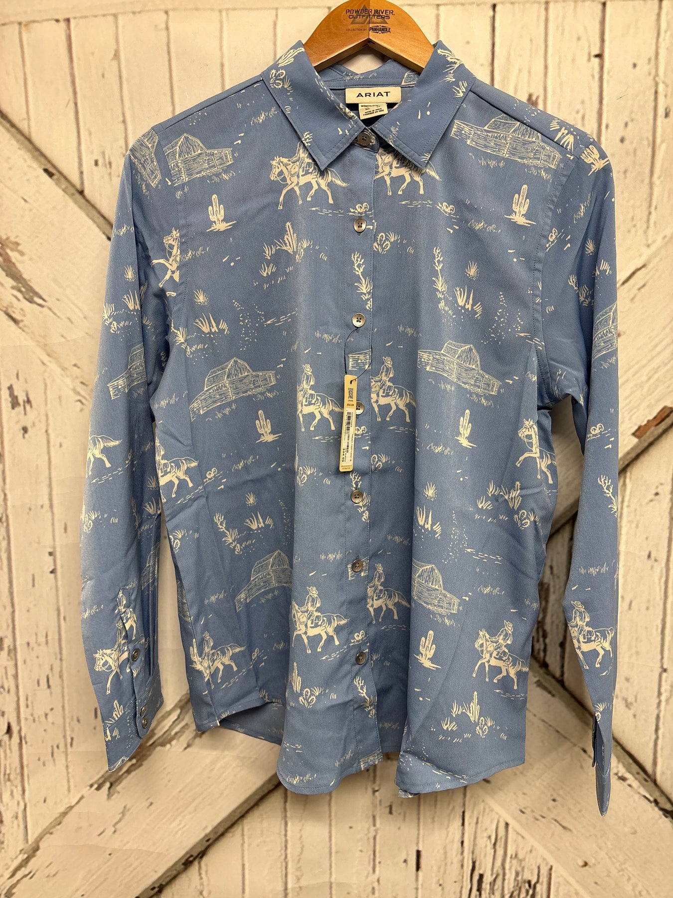 ARIAT LS HOMESTYLE RANCHSCAPE SHIRT-BLUE