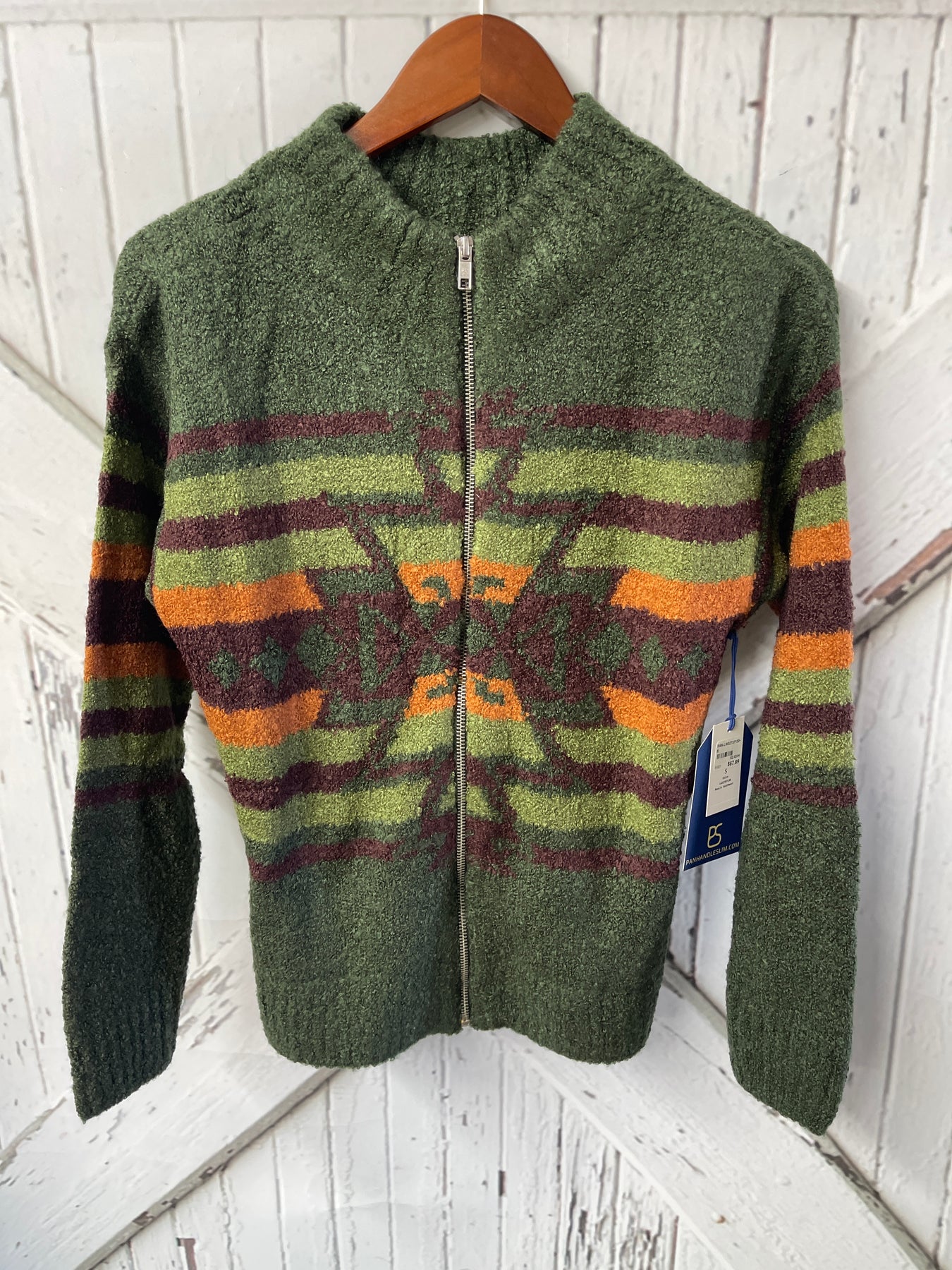 LOOK CUTE AND COMFY IN THIS SOUTHWESTERN ZIP UP SWEATER. MADE FROM AN ACRYLIC/NYLON/POLYESTER BLEND, THIS SWEATER FEATURES A SOUTHWEST PATTERN, LONG SLEEVES, AND A RELAXED BODY.