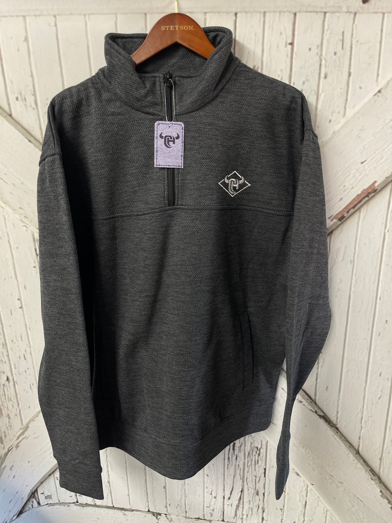 THE COWBOY HARDWARE MEN'S SERAPE BLACK HEATHER KNOBBY FLEECE CADET COMBINES RUGGED STYLE WITH SUPERIOR COMFORT, MAKING IT A VERSATILE CHOICE FOR CASUAL WEAR OR OUTDOOR ADVENTURES. FEATURING A UNIQUE SERAPE DESIGN ON THE CHEST AND A BLACK HEATHER KNOBBY FLEECE CONSTRUCTION, THIS CADET PULLOVER OFFERS BOTH WARMTH AND STANDOUT STYLE. THE HIGH COLLAR AND QUARTER-ZIP CLOSURE PROVIDE ADJUSTABLE COVERAGE, WHILE THE DURABLE FABRIC ENSURES LONG-LASTING WEAR. PERFECT FOR LAYERING, ITS’S AN ESSENTIAL ADDITION TO ANY WARDROBE.