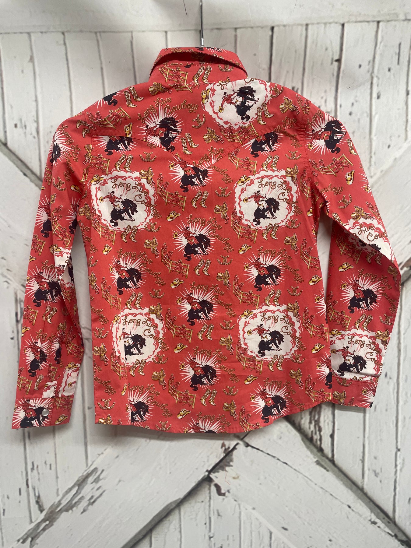 SHE’LL LOOK SHARP AS CAN BE WHEN SHE WEARS OUR GIRL’S LONG SLEEVE COWGIRL HORSE PRINT WESTERN SNAP SHIRT. IT’S CRAFTED FROM 100% COTTON IN A STRIKING HUE THAT WILL SEPARATE HER FROM THE PACK ANYWHERE SHE GOES. IT COMES WITH MATCHING CHEST FLAP POCKETS WITH OUR SIGNATURE “W” STITCHING, A PEARL SNAP CLOSURE, AND A PRINT OF SERAPE HORSES TO SET THE TONE FOR ANY OUTFIT.