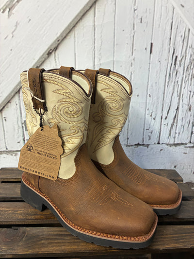 ROCKY LEGACY BROWN WHITE SQUARE TOE BOOT
