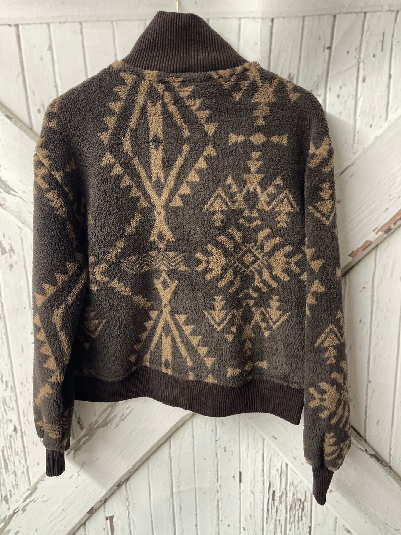 HOOEY "ASPEN" BROWN SHERPA JACKET WITH TAN AZTEC