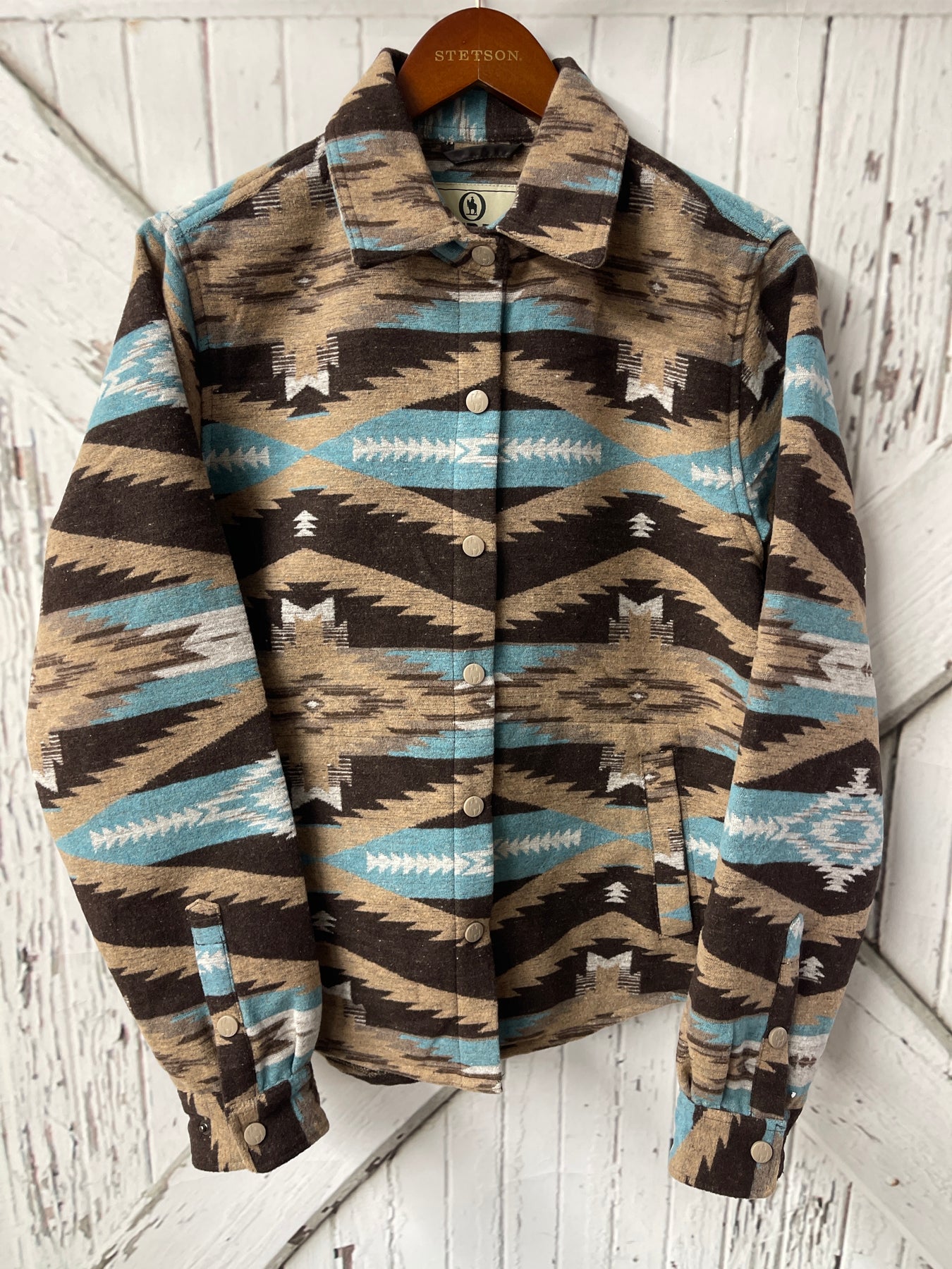 NOT ALL JACKETS ARE MADE THE SAME AND THE DAPHNE SHIRT JACKET TRULY BREAKS THE MOLD. MADE FROM A STUNNING TIMELESS WOOL-LIKE AZTEC PATTERN, THE DAPHNE SHIRT JACKET IS A LITTLE FORMAL AND A LITTLE FUN. FEATURES INCLUDE SNAPS AND ADJUSTABLE CUFFS.